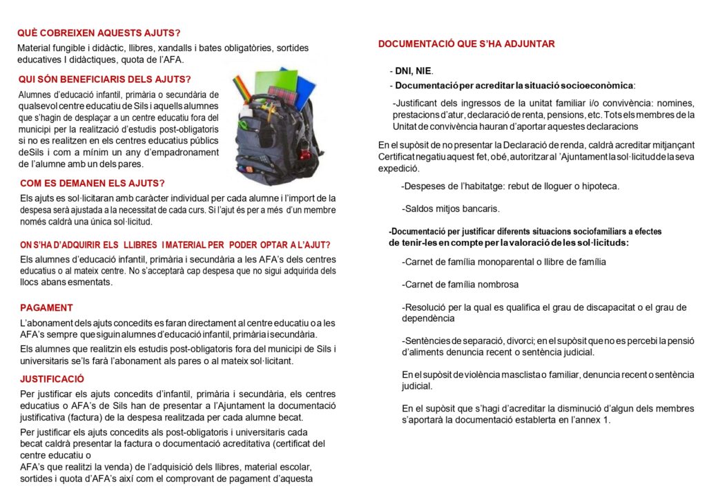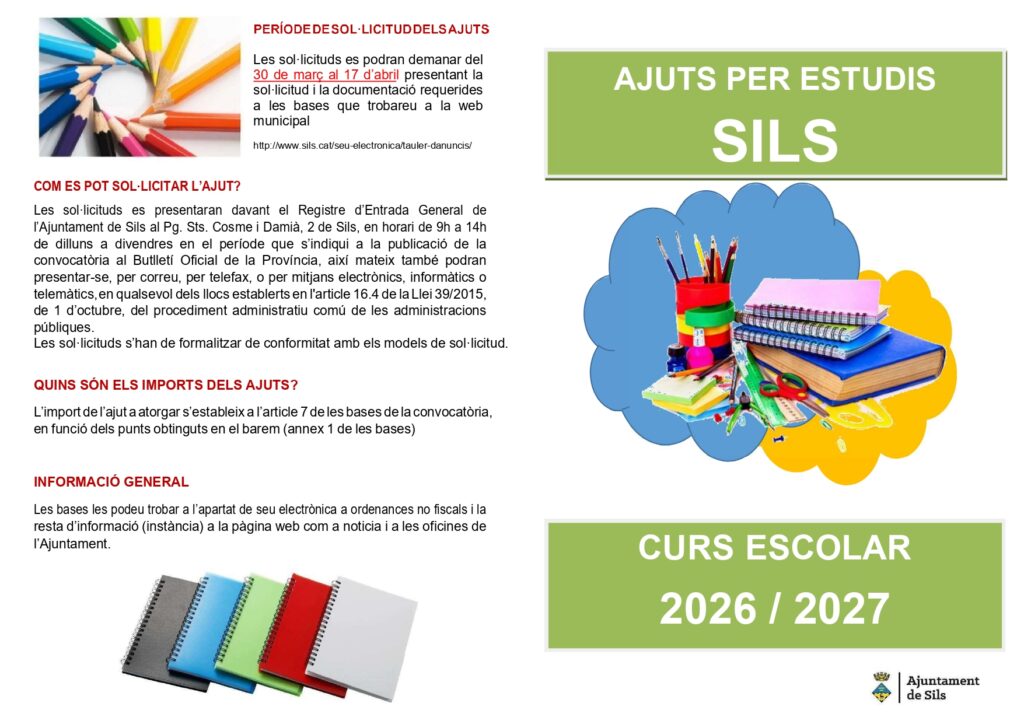 • Ajuts per estudis Sils. Curs escolar 2026/2027