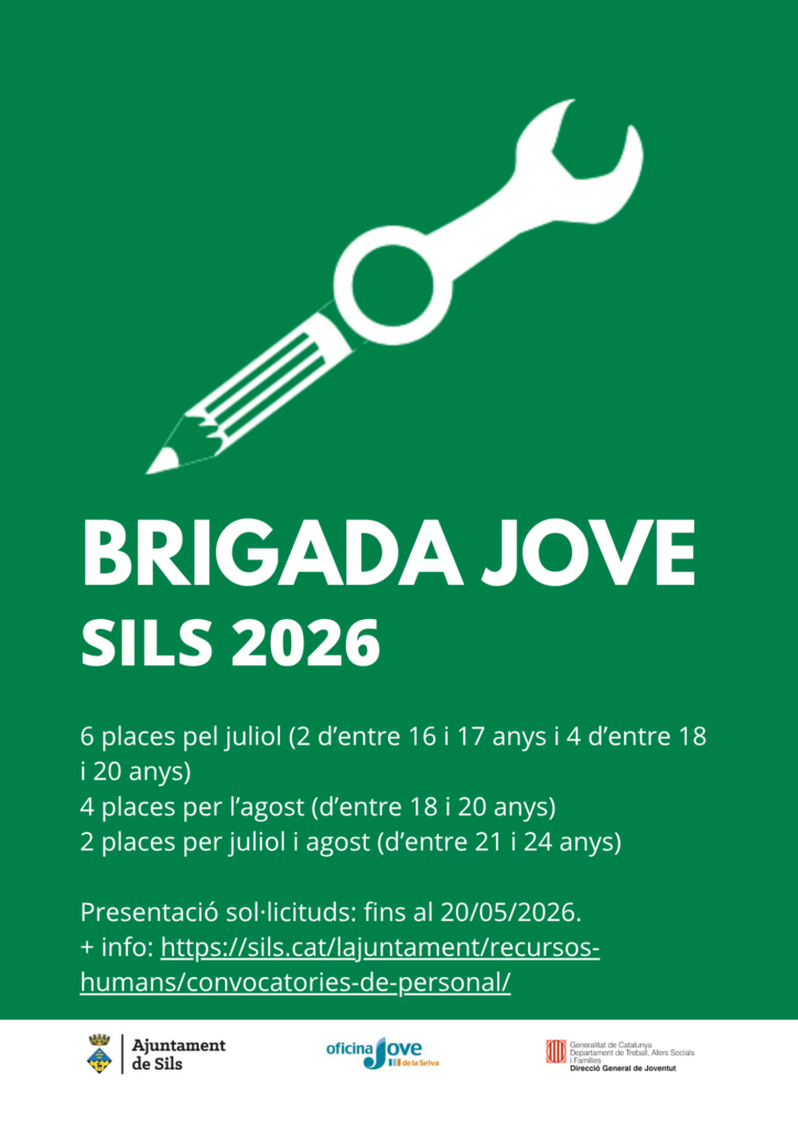 Si tens entre 16 i 24 anys i busques feina per aquest estiu, apunta’t a la BRIGADA JOVE de Sils 2026.