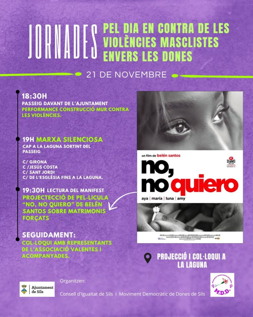 Els diferents actes del 21 de novembre pretenen convocar a la ciutadania per tal que desenvolupi un paper proactiu en la prevenció, la detecció i la reparació de les violències contra les dones i posar de manifest que el silenci no és una opció sinó que només perpetua la impunitat de l’agressor.
