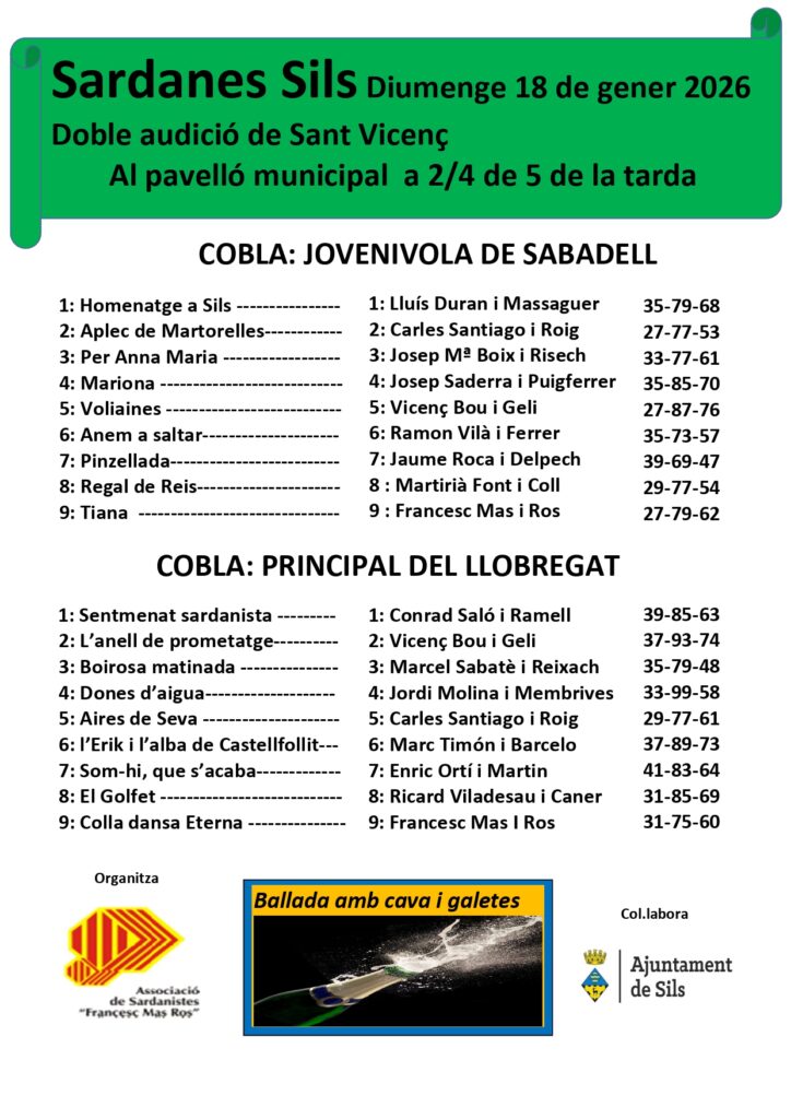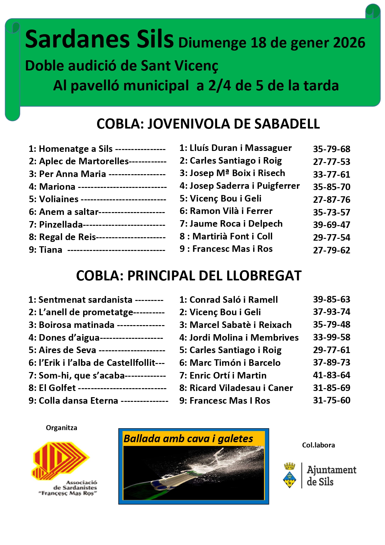 Agenda Doble audició de Sant Vicenç 18/01/2026 - 18/01/2026 | Pavelló municipal < Entrada AnteriorEntrada Posterior >