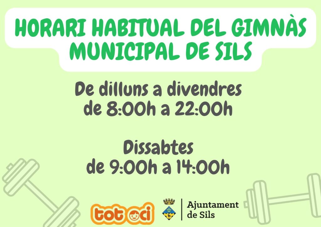 El gimnàs només obrirà de 9.00 h a 10.00 h per a la classe de tonificació.