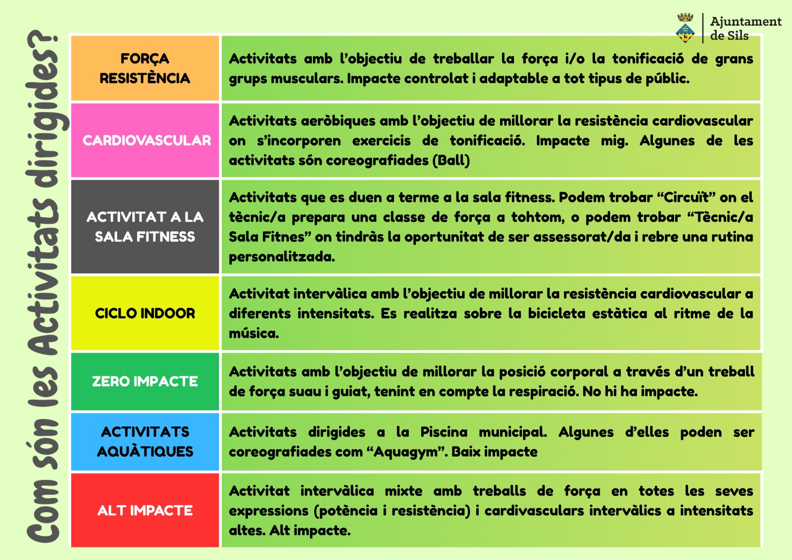 El gimnàs només obrirà de 9.00 h a 10.00 h per a la classe de tonificació.