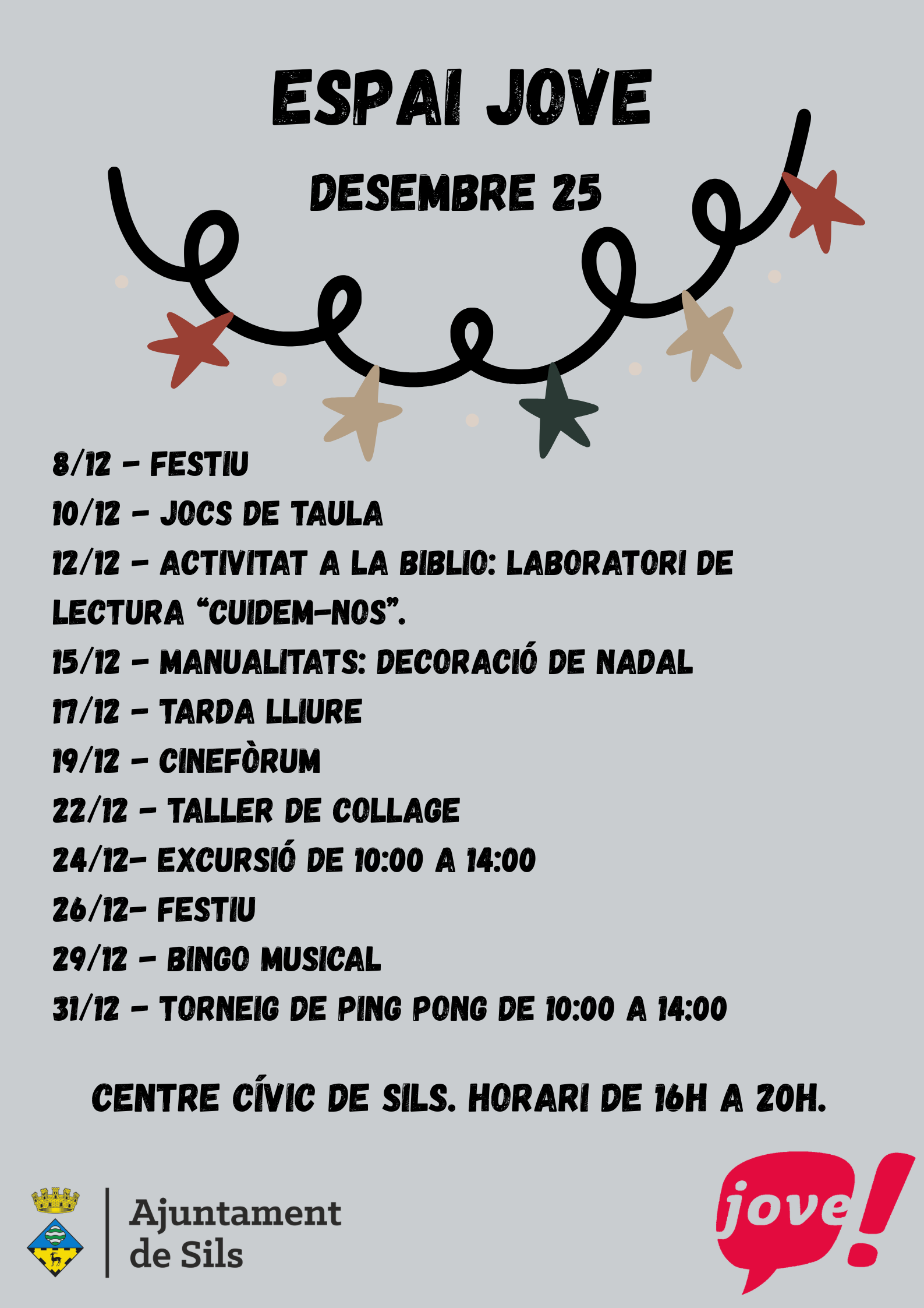 Per qualsevol dubte o qüestió, poden contactar amb el Centre Cívic de Sils al telèfon 972 853 913 o bé per correu electrònic a centrecivicsils@sils.cat