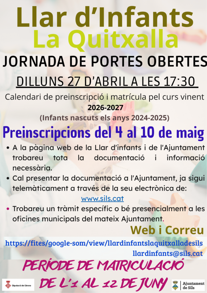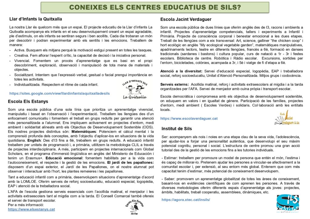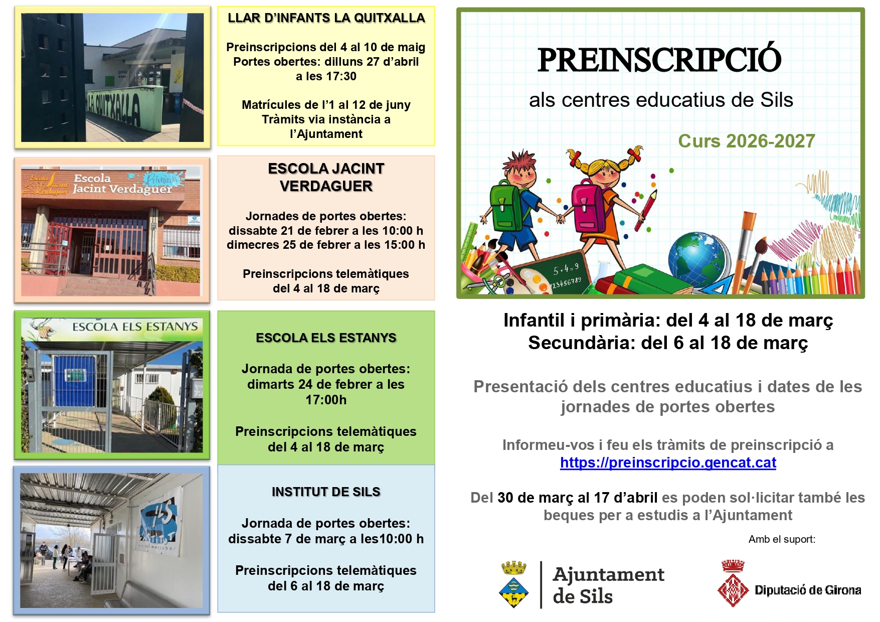 • Preincripció i Portes obertes dels centres educatius de Sils curs 2026-2027