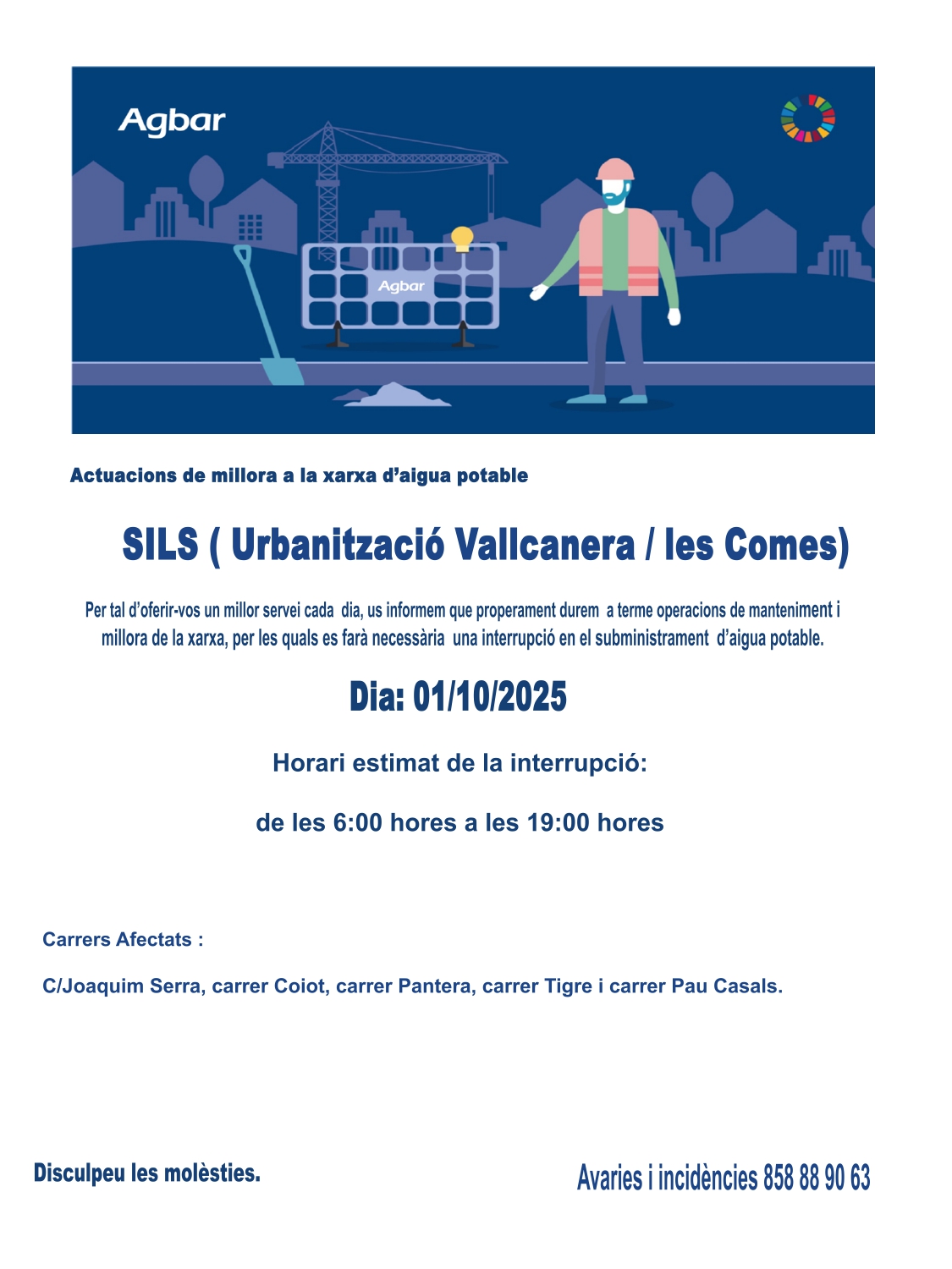 • Tall de subministrament d’aigua Vallcanera/Les Comes