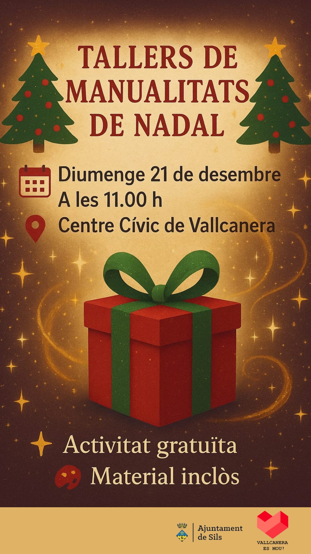 Agenda Tallers de manualitats de Nadal al Centre cívic de Vallcanera, dissabte 20 i diumenge 21 de desembre 20/12/2025 - 21/12/2025 | Centre cívic de Vallcanera I l’anteriorment anunciat pel dia 14 de desembre: < Entrada Anterior